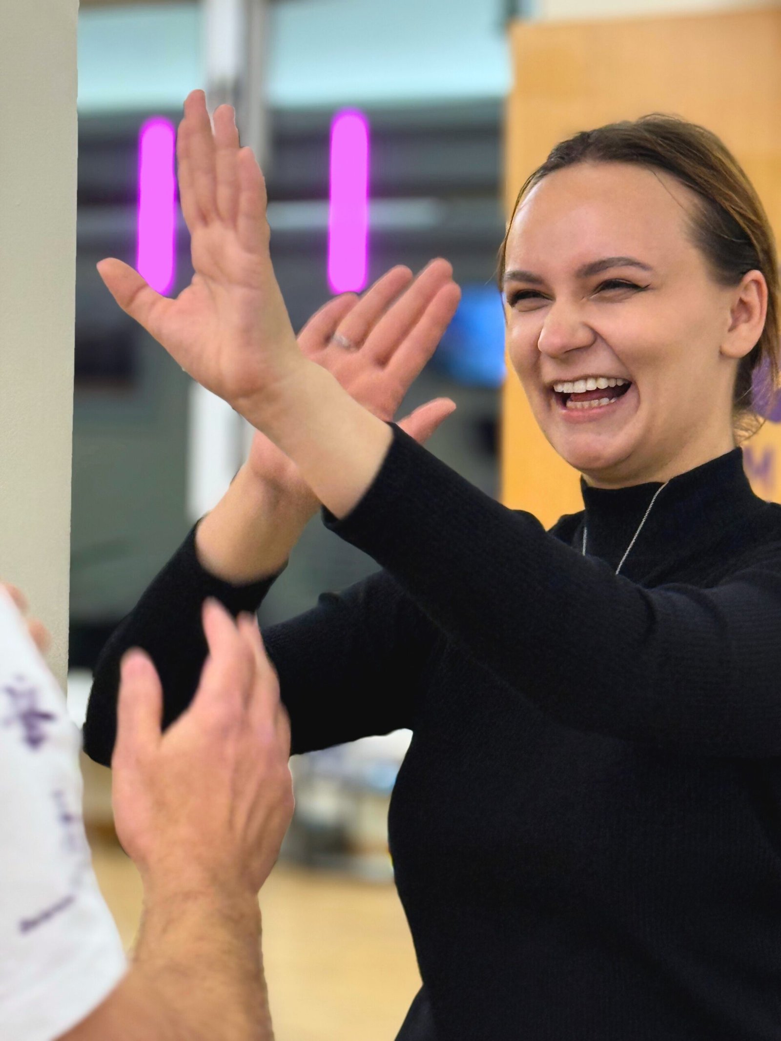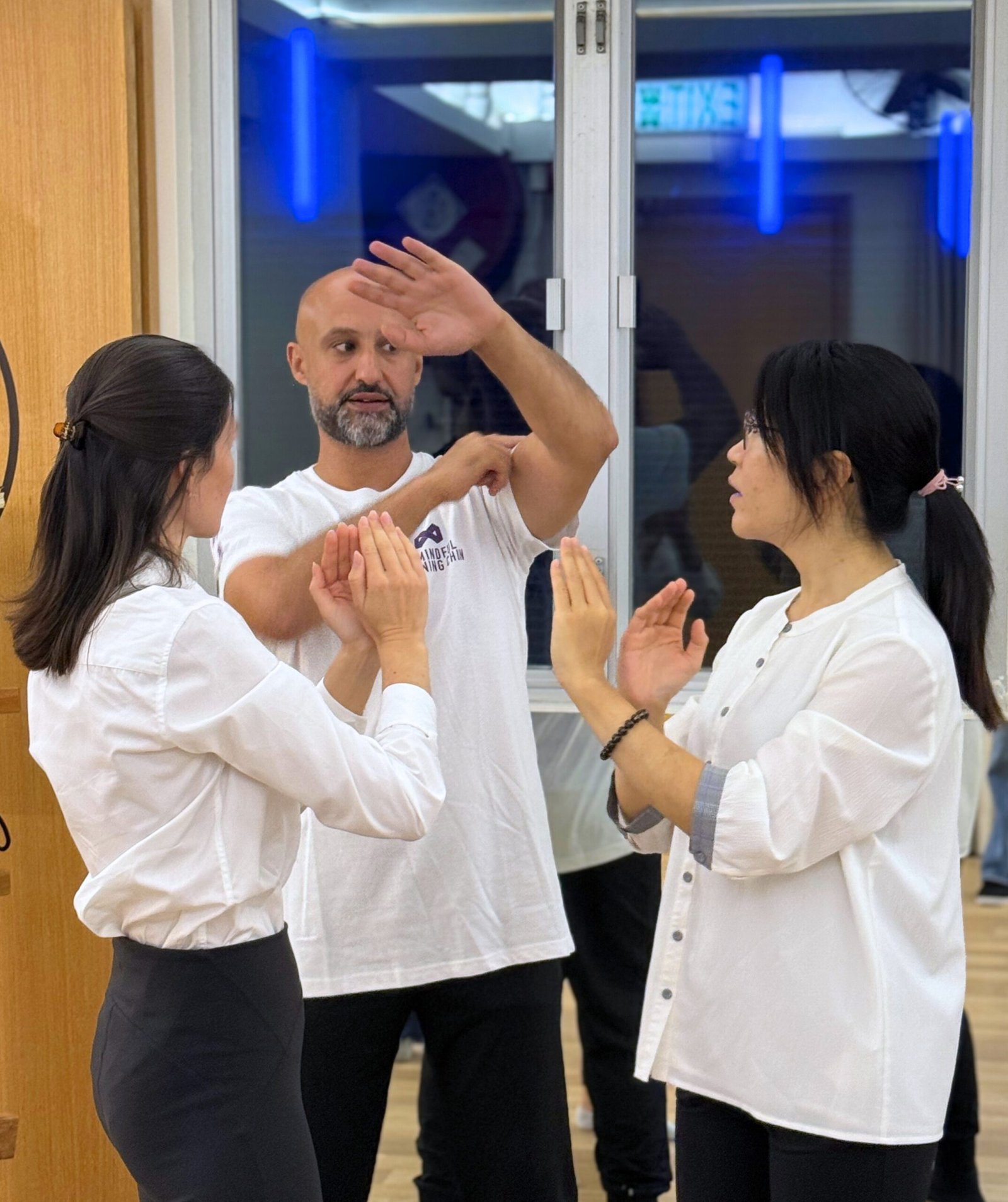 Participants learned three simple techniques โ€” practical self-defence guard, posture alignment, centerline breathingโ€” that instantly improve presence and calm the nervous system.